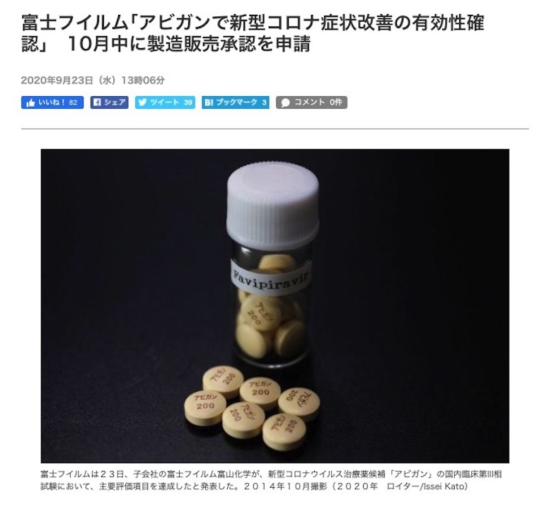抗ウイルス特効薬アビガンがどういう薬かについては何度も詳しくやってきたので割愛する。アビガンはウイルスを根本的に治す薬ではない。ウイルスが増殖するのを防ぐ薬だ。従って、高齢もしくは持病があり、免疫力が弱っている人間にアビガンを投与してウイルスが広がるのを防いでも、本人に体力がなければ回復できずに死ぬという、ごく簡単な話である。しかし、治験先の研究機関では、こういった薬の特徴を完全に無視し、単に何日で回復したかというパンダでもできるような低レベルで意味のない治験を何ヶ月もズルズルと延期しながら行ったあげく、有効性が確認できなかったと発表する始末。もう、バカバカしくて開いた口が塞がらない。
