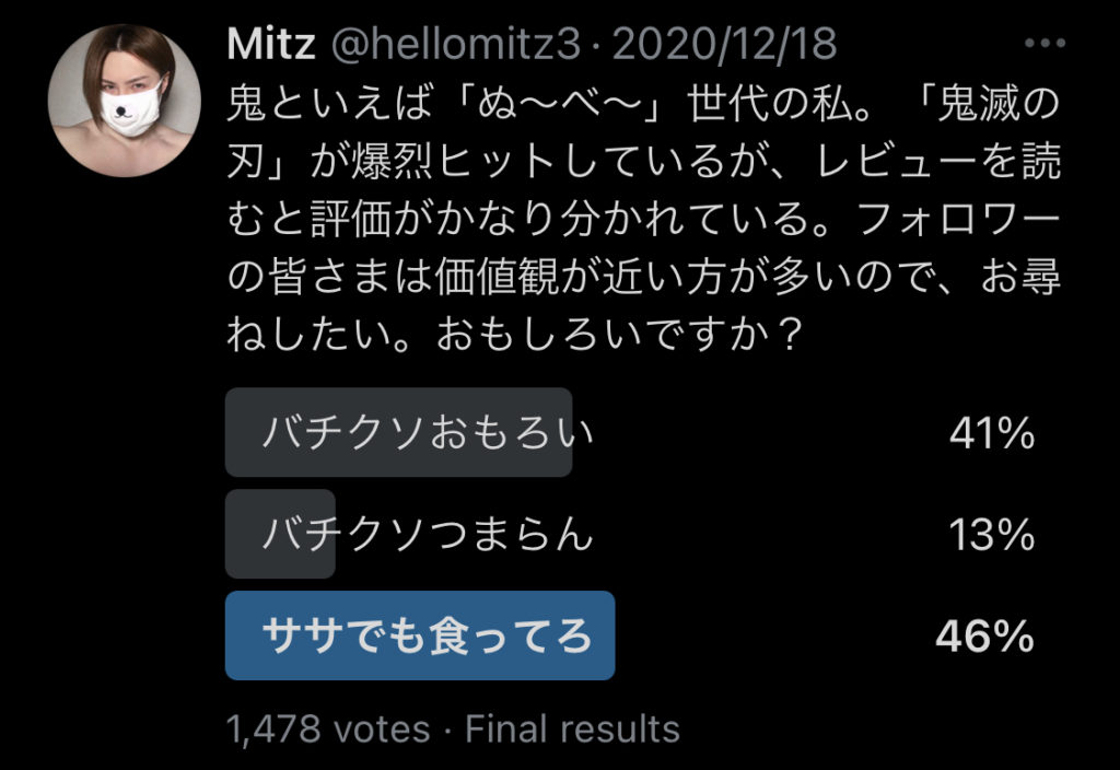 鬼滅の刃が爆烈に流行っているので読むべきかアンケートしたら、「ササでも食ってろ」が優勝するというまさかの結果になったが、それでもおもしろいという人が圧倒的に多かったので読み始めました。HAHA