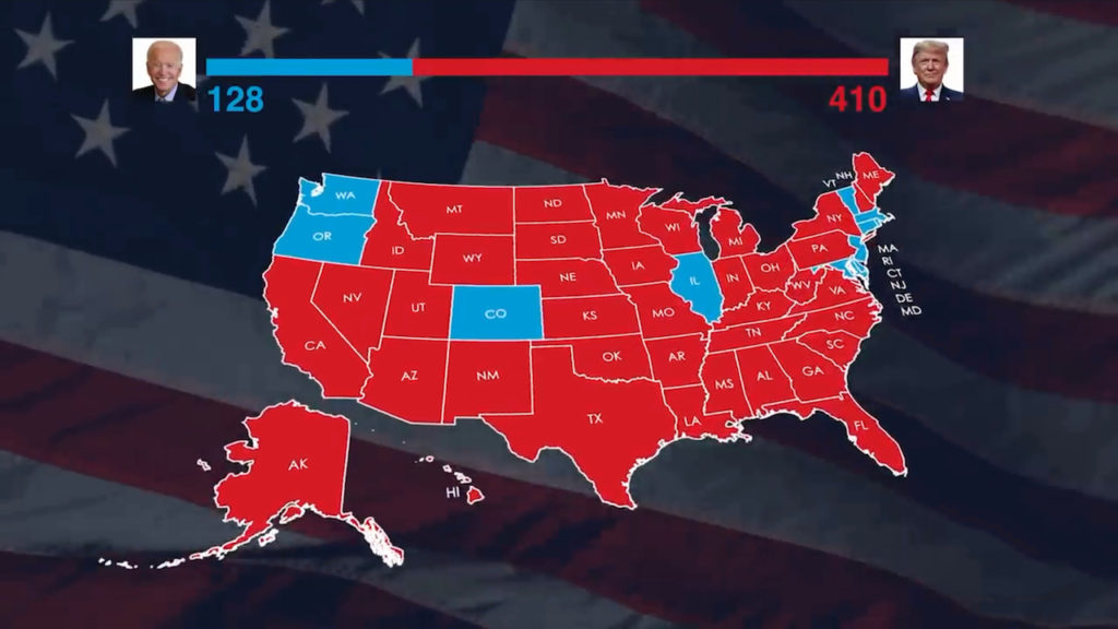 当初、アメリカ大統領選挙はこうだった。選挙人獲得数410人というトランプの圧勝である。