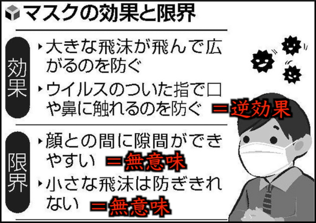 マスクを長期間つけると酸素供給が減って免疫力が落ちたり、むしろ不衛生で感染リスクが上がるので逆効果だということも知らない。